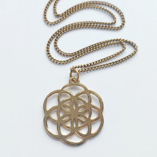 Seme della Vita Maria Orecchini in Ottone con Quarzo Ialino