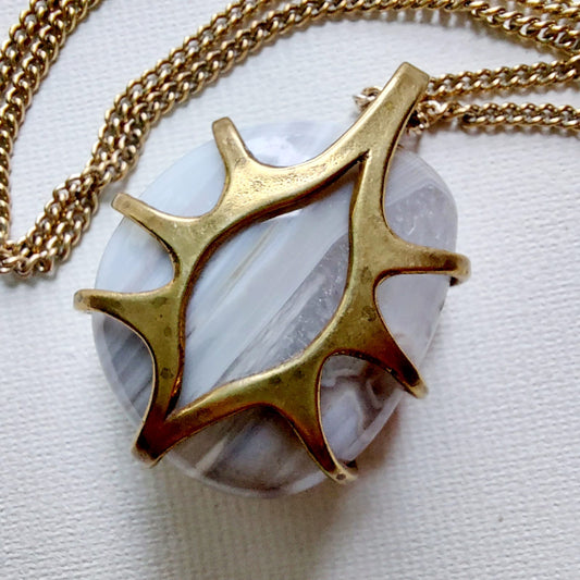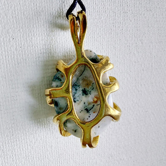 Agata Arborizzata Ciondolo Piccolo in Ottone