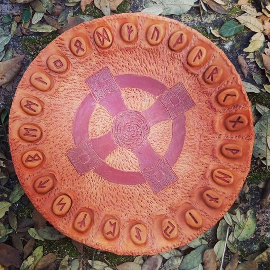 Piatto Oracolo delle Rune e Set 24 Rune Terracotta Futhark Germanico per Divinazione