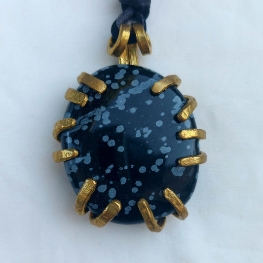 Ossidiana Fiocco di Neve Pietra delle Valkyrie Ciondolo grande in Ottone