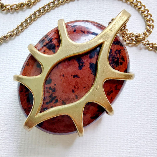 Ossidiana Mogano Ciondolo Grande in Ottone