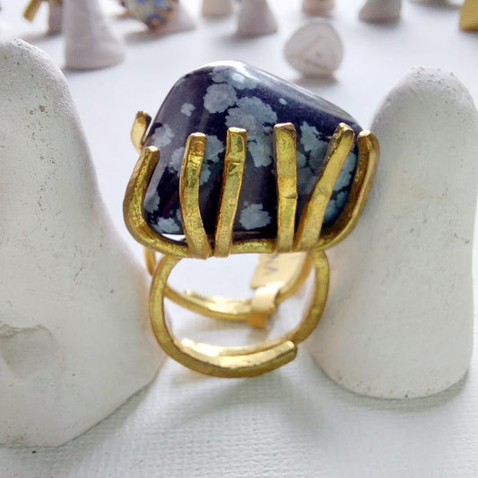 Ossidiana Fiocco di Neve Anello delle Valkyrie in Ottone