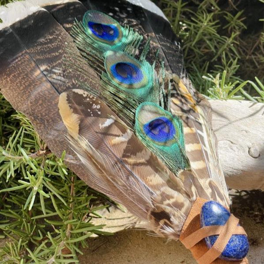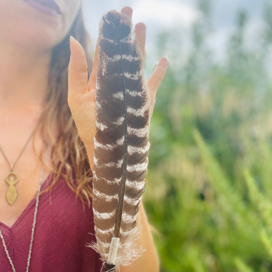 Ventaglio Sciamanico Piuma Singola Tacchino e Selenite