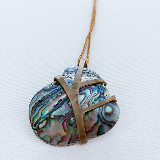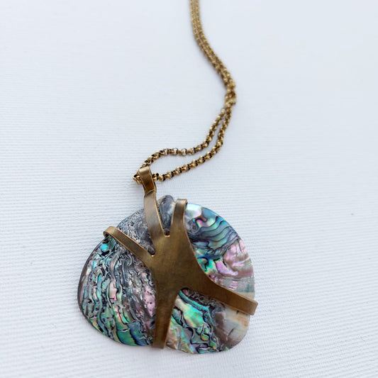 Madreperla Abalone Nuova Zelanda Ciondolo Grande in Ottone Etico