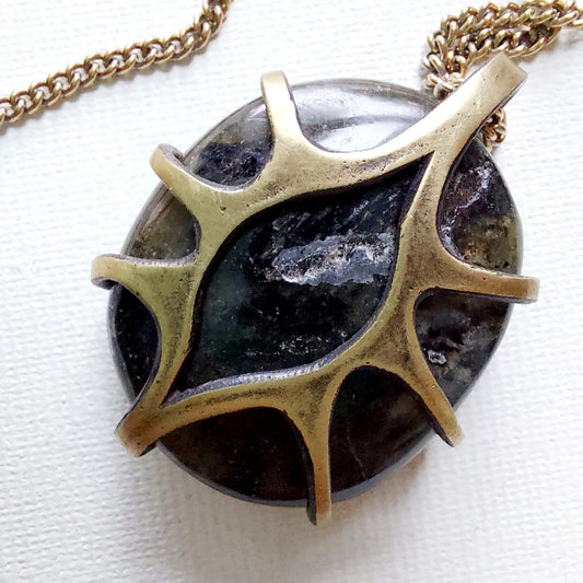 Fluorite Pietra delle Valkyrie Ciondolo grande in Ottone