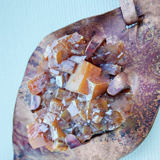 Collier "Danza d'Autunno" Cristallo di Wulfenite e Granati Hessonite in Rame Etico