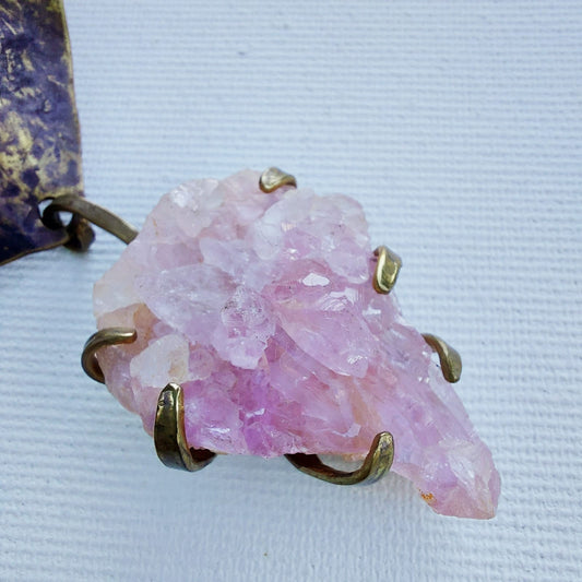 Collier "Sigrun" Pendente in Quarzo Rosa e Quarzi Ametrini in Ottone Etico