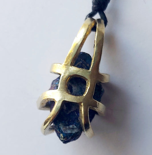 Indicolite Tormalina Blu - BEECH - Ciondolo Piccolo in Ottone