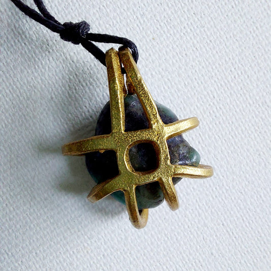Talismano Runico Amazzonite con Rune Legate Ciondolo in Ottone