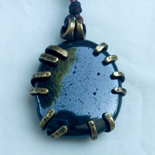Ematite Pietra delle Valkyrie Ciondolo grande in Ottone