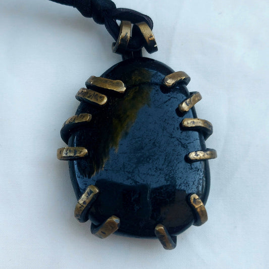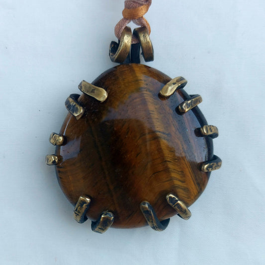 Occhio di Tigre Pietra delle Valkyrie Ciondolo grande in Ottone