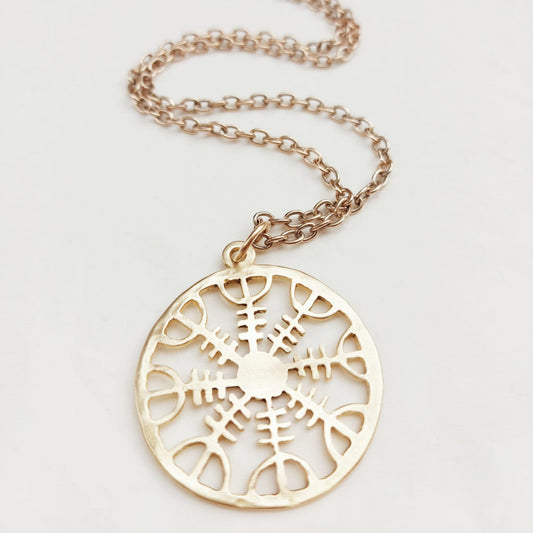 Ægishjalmur Simbolo di Protezione Islandese Ciondolo in Ottone