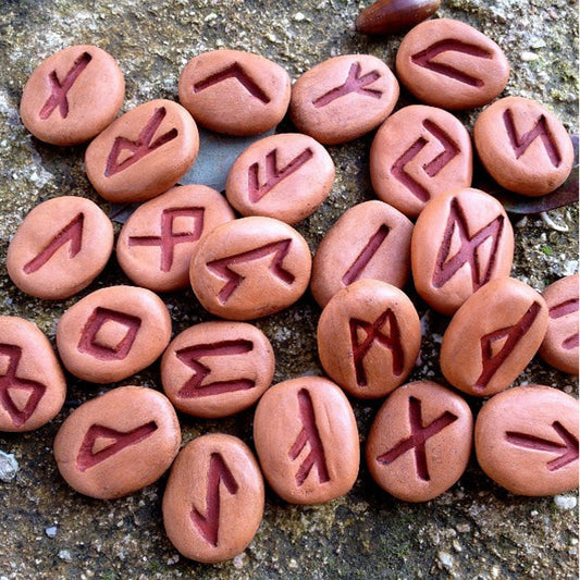 Set Runico 24 Rune Futhark Germanico in Terracotta per Divinazione