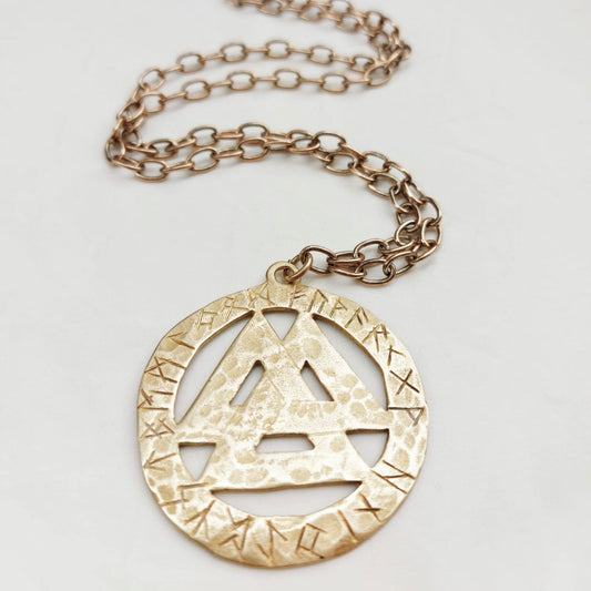 Valknut con 24 Rune Futhark Germanico Ciondolo in Ottone