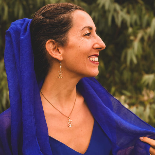 Merkaba Kuan Yin Orecchini in Ottone con Ametista