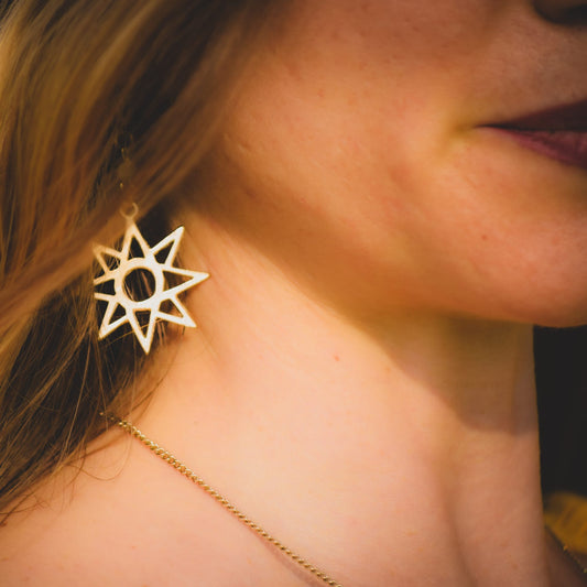 Stella a 8 punte di Ishtar Orecchini in Ottone con Calcite gialla