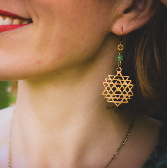 Sri Yantra di Tara Verde Orecchini in Ottone con Avventurina verde