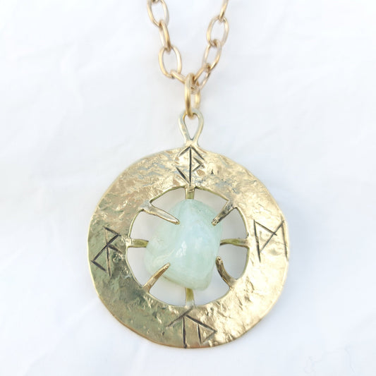 Talismano Runico Acquamarina con Rune Legate Ciondolo in Ottone