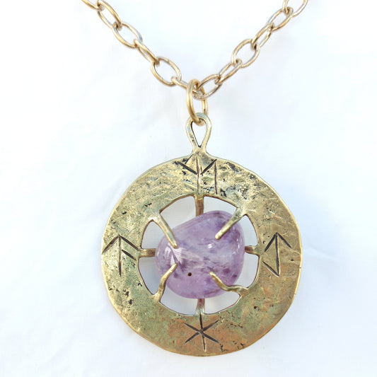 Talismano Runico Ametista con Rune Legate Ciondolo in Ottone