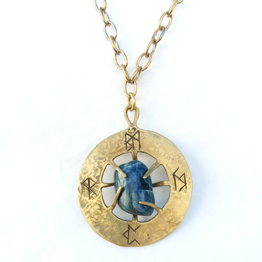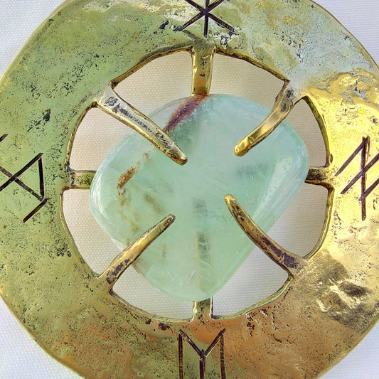 Talismano Runico Apatite con Rune Legate Ciondolo in Ottone