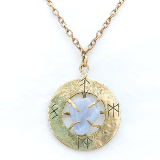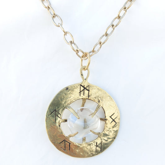 Talismano Runico Calcedonio con Rune Legate Ciondolo in Ottone