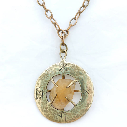 Talismano Runico Quarzo Citrino con Rune Legate Ciondolo in Ottone