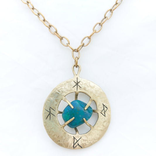 Talismano Runico Crisocolla con Rune Legate Ciondolo in Ottone