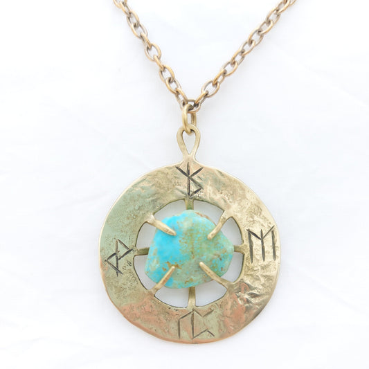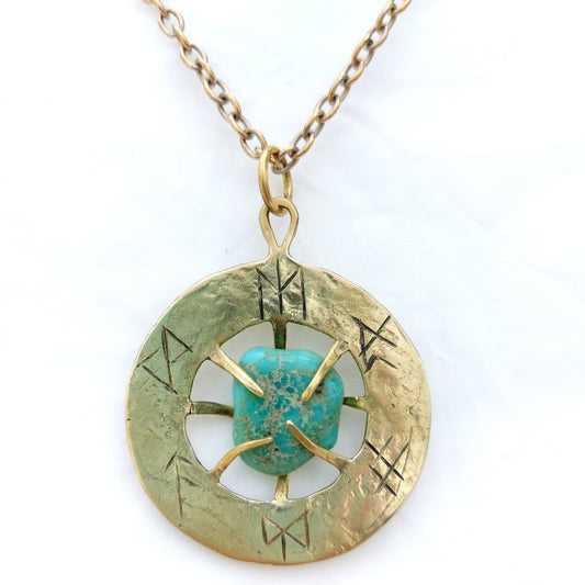 Talismano Runico Turchese con Rune Legate Ciondolo in Ottone