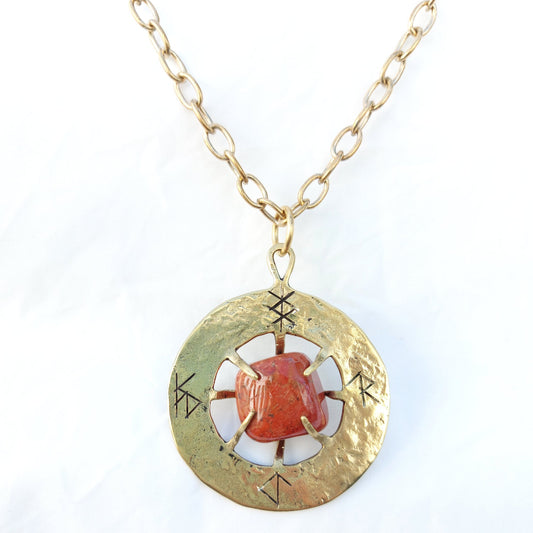 Talismano Runico Diaspro Rosso con Rune Legate Ciondolo in Ottone