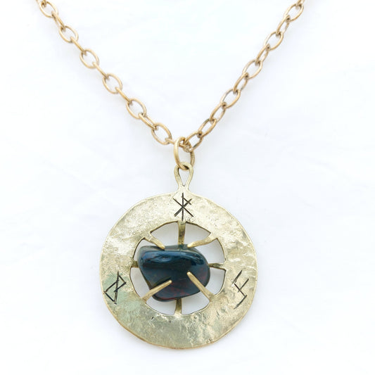 Talismano Runico Eliotropio con Rune Legate Ciondolo in Ottone
