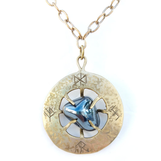 Talismano Runico Ematite con Rune Legate Ciondolo in Ottone