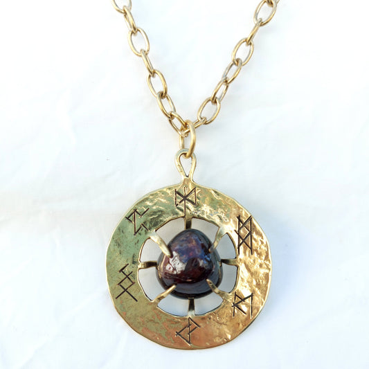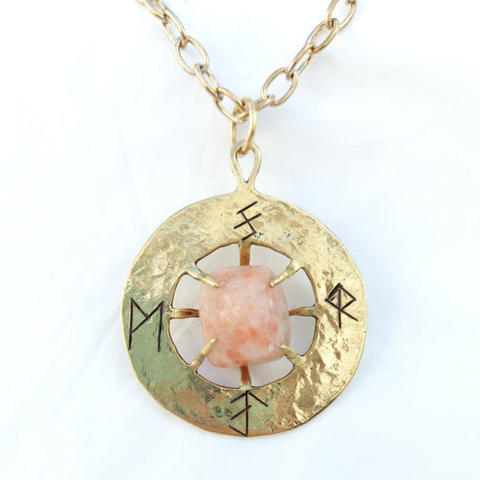 Talismano Runico Pietra di Sole con Rune Legate Ciondolo in Ottone