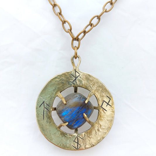 Talismano Runico Labradorite con Rune Legate Ciondolo in Ottone