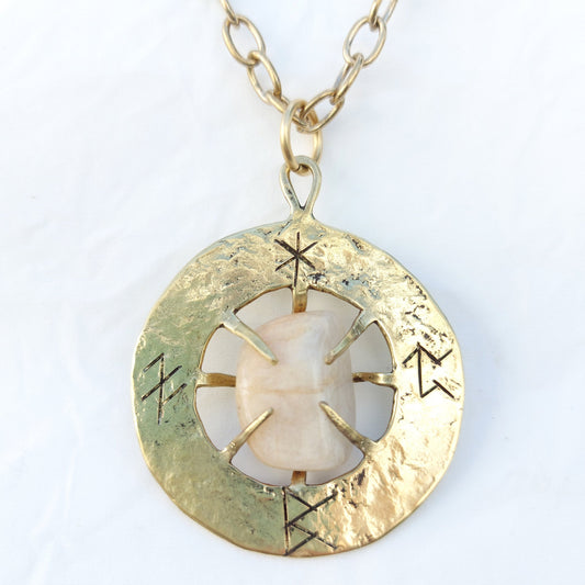 Talismano Runico Pietra di Luna con Rune Legate Ciondolo in Ottone