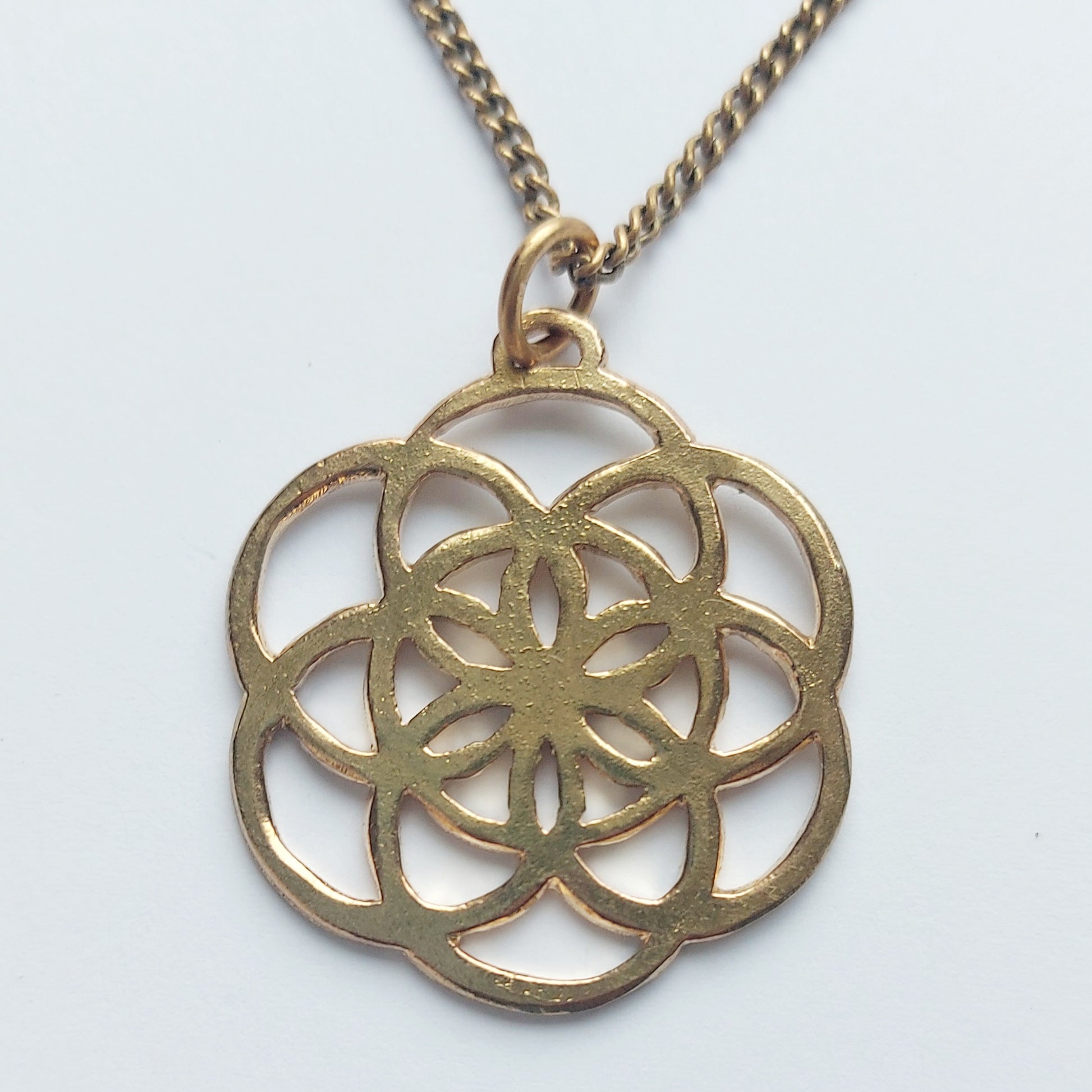 Ciondolo Seme della Vita Maria in Ottone, creato a cera persa da modello originale traforato a mano.