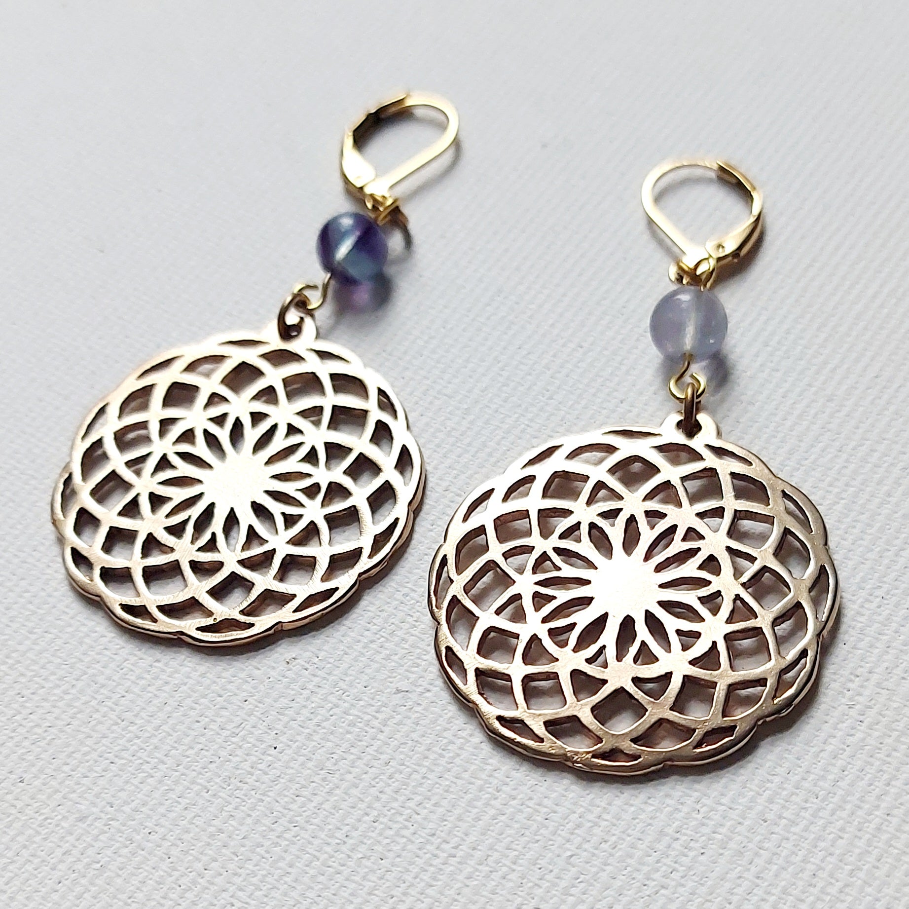 Toroide Sophia Orecchini in Ottone con Fluorite